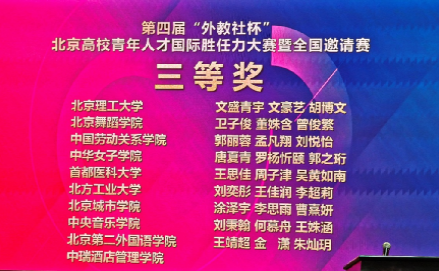11月7日,我校代表队在第四届“外教社杯”北京高校青年人才国际胜任力大赛决赛中荣获三等奖。