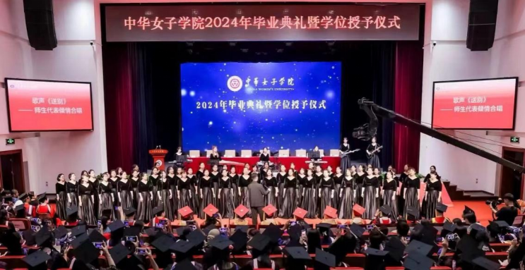中华女子学院2024年毕业典礼暨学位授予仪式在全体师生齐唱校歌的熟悉旋律中圆满结束。