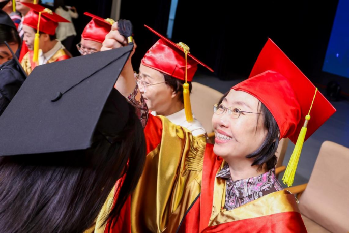 典礼结束后,进行庄严的学位授予仪式。学校学位评定委员会副主席周应江宣读《中华女子学院关于授予2024届毕业生学位的决定》。学校领导和学位评定委员会为1043名学生扶正流苏,颁发学位证书,授予学位。