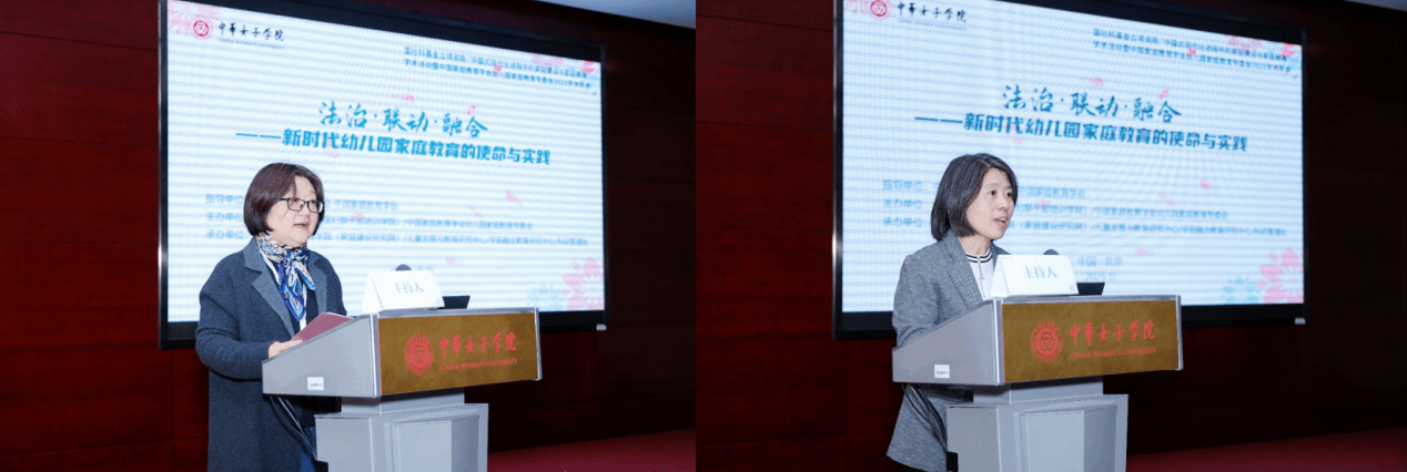 刘亚玫代表中华女子学院向莅临会议的嘉宾表示热烈欢迎,并向长期支持学校发展的同仁和朋友们表示衷心感谢。她指出,党的十八大以来,习近平总书记高度重视家庭、家教、家风建设,形成了系统完整的家庭教育思想,为理解家庭教育提供了根本遵循。今年是《学前教育法》正式实施的开局之年,在全国上下深入学习贯彻党的二十届四中全会精神之际,本次年会以“法治·联动·融合”为主题,既是学术盛会,更是推动家庭教育高质量发展的思想会、动员会和行动会。中华女子学院作为全国妇联直属的高等学府,未来期待与各界携手共同推动家庭教育高质量发展。